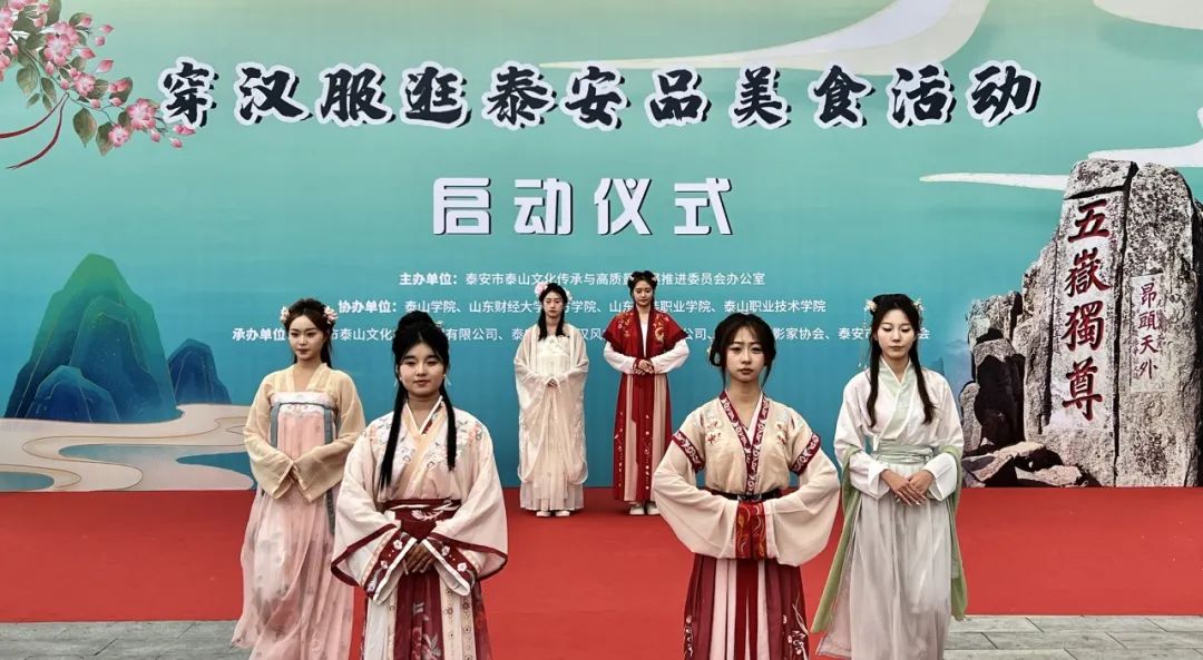 11月16日,由泰安市泰山文化傳承與高質(zhì)量發(fā)展推進(jìn)委員會(huì)辦公室主辦,泰山文旅集團(tuán)、泰安市龍泉漢風(fēng)文化傳媒有限公司、泰安市攝影家協(xié)會(huì)、泰安市漢服協(xié)會(huì)承辦,泰山學(xué)院、山東財(cái)經(jīng)大學(xué)東方學(xué)院、山東服裝職業(yè)學(xué)院、泰山職業(yè)技術(shù)學(xué)院協(xié)辦的“穿著漢服逛泰安品美食”活動(dòng)在紅門廣場(chǎng)成功舉辦,200余名駐泰高校的漢服愛好者齊聚一堂。